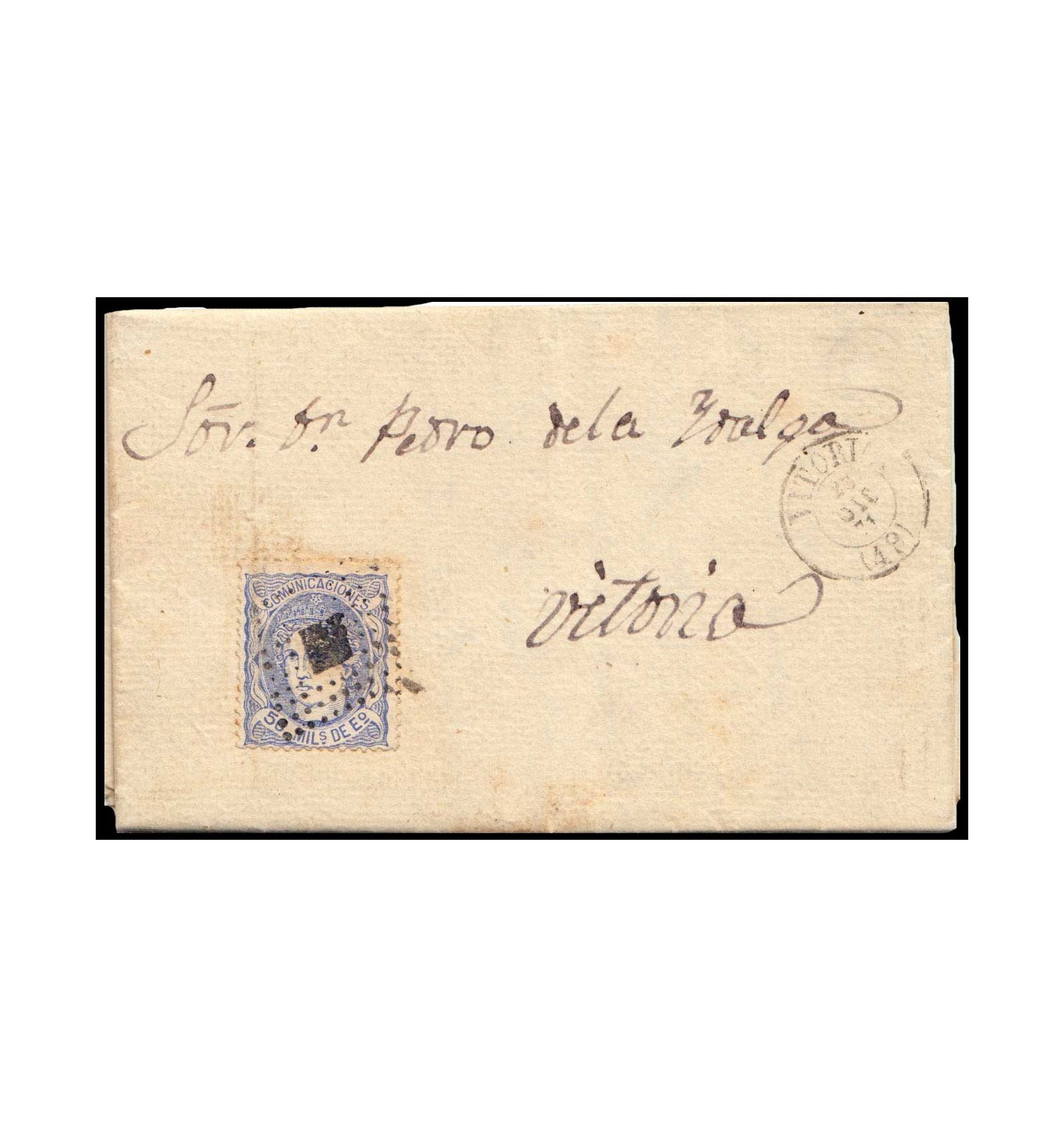 Carta de Maestu (Alava) a Reus del 27 de diciembre de 1871. Matasello rombo de puntos y fechador de Vitoria. Carta nacida en a pequeña población hoy conocida como Arraya-Maestu.