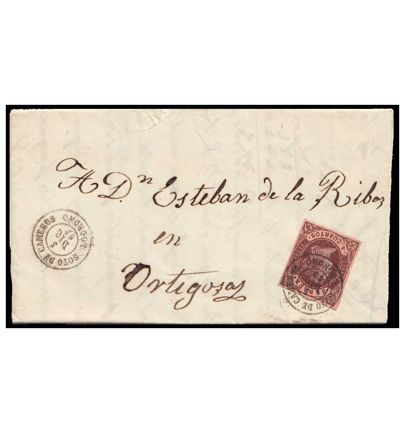 Carta de Soto de Cameros (Logroño, La Rioja) a Ortigosa del 5 de diciembre de 1863. Matasello fechador negro de Soto de Cameros.