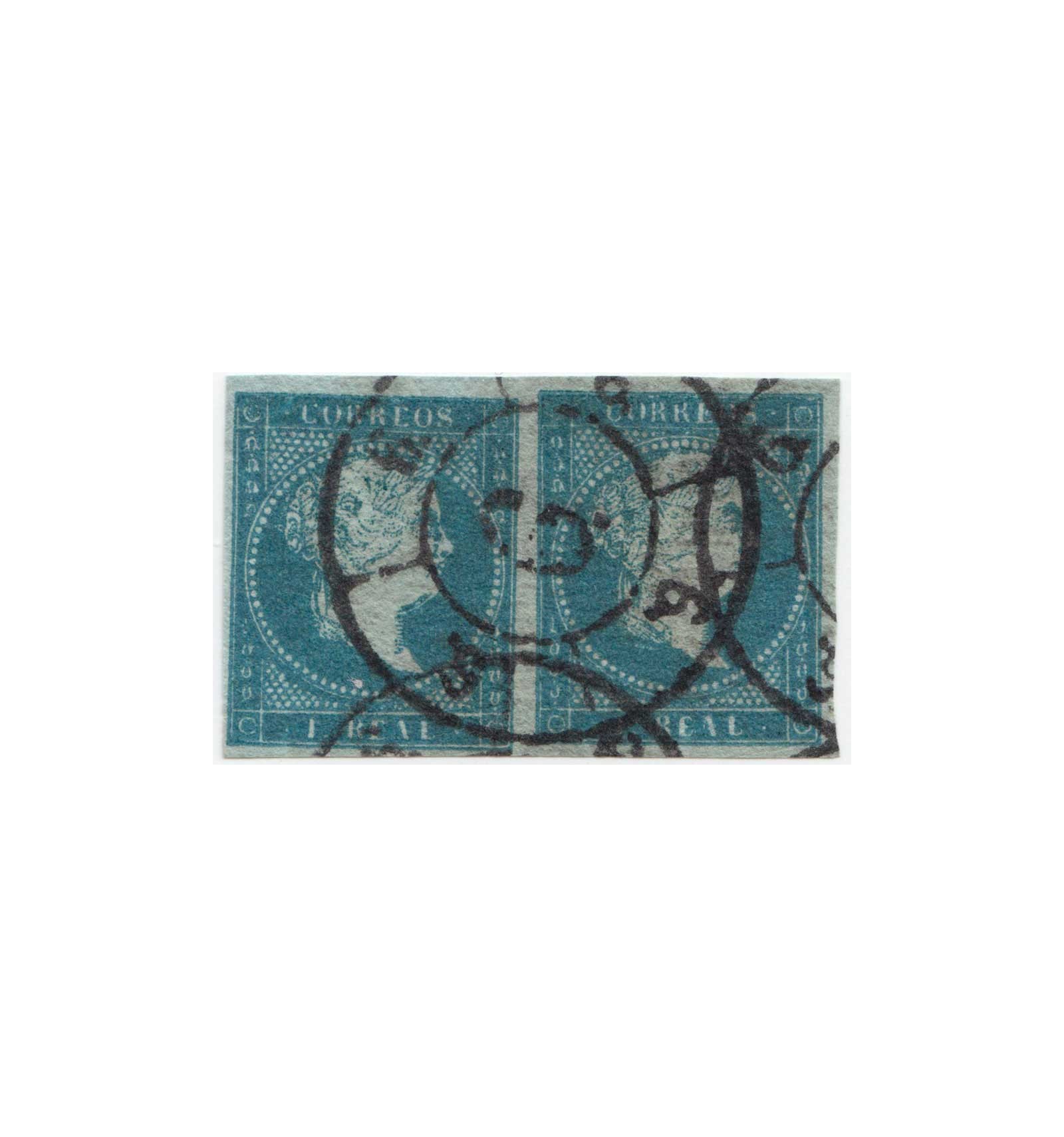 Usado. Pareja con matasello rueda de carreta de Málaga. Buenos márgenes y calidad excepcional.