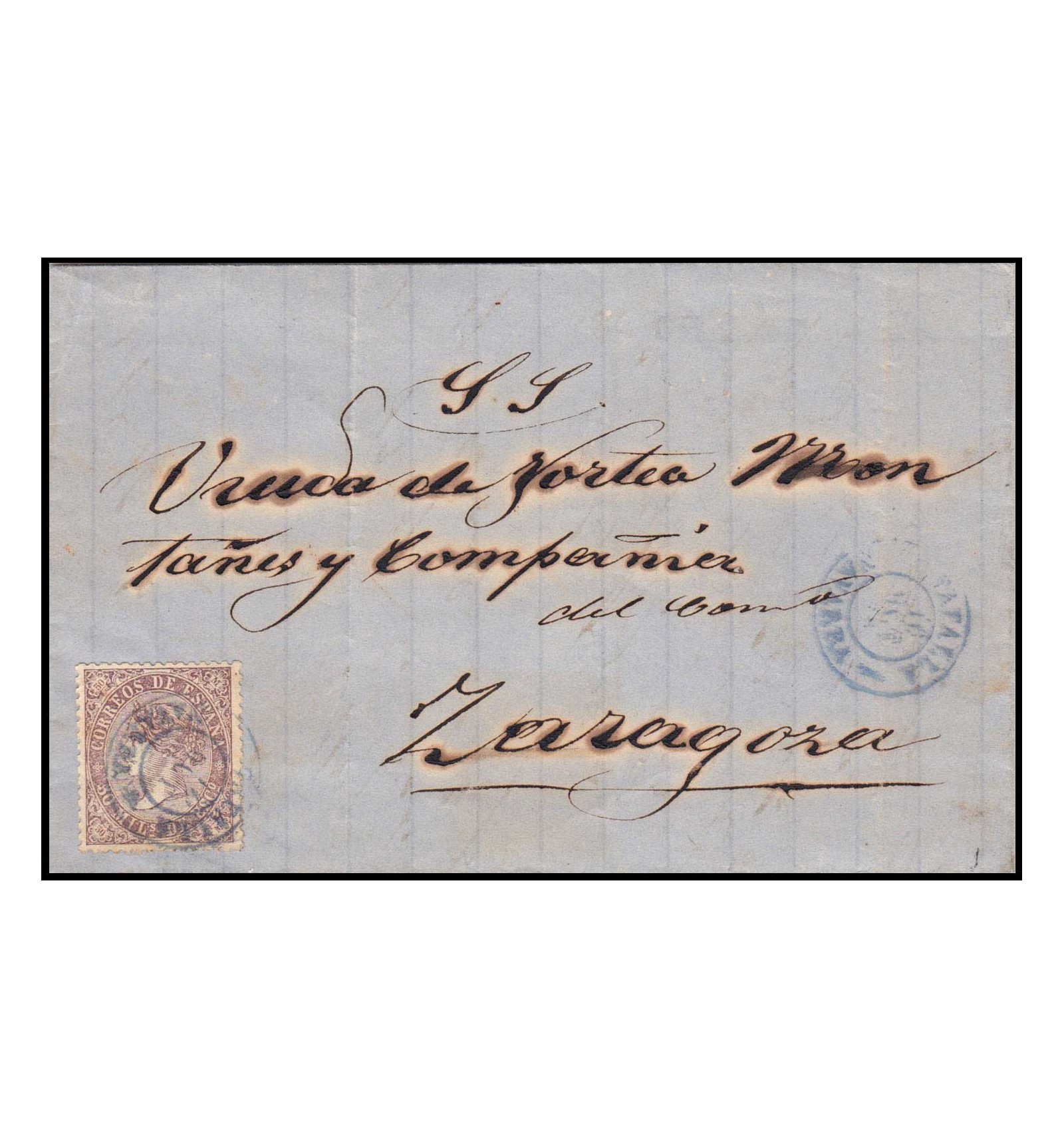 Sobre de Tafalla (Navarra) a Sevilla del 16 de octubre de 1869.