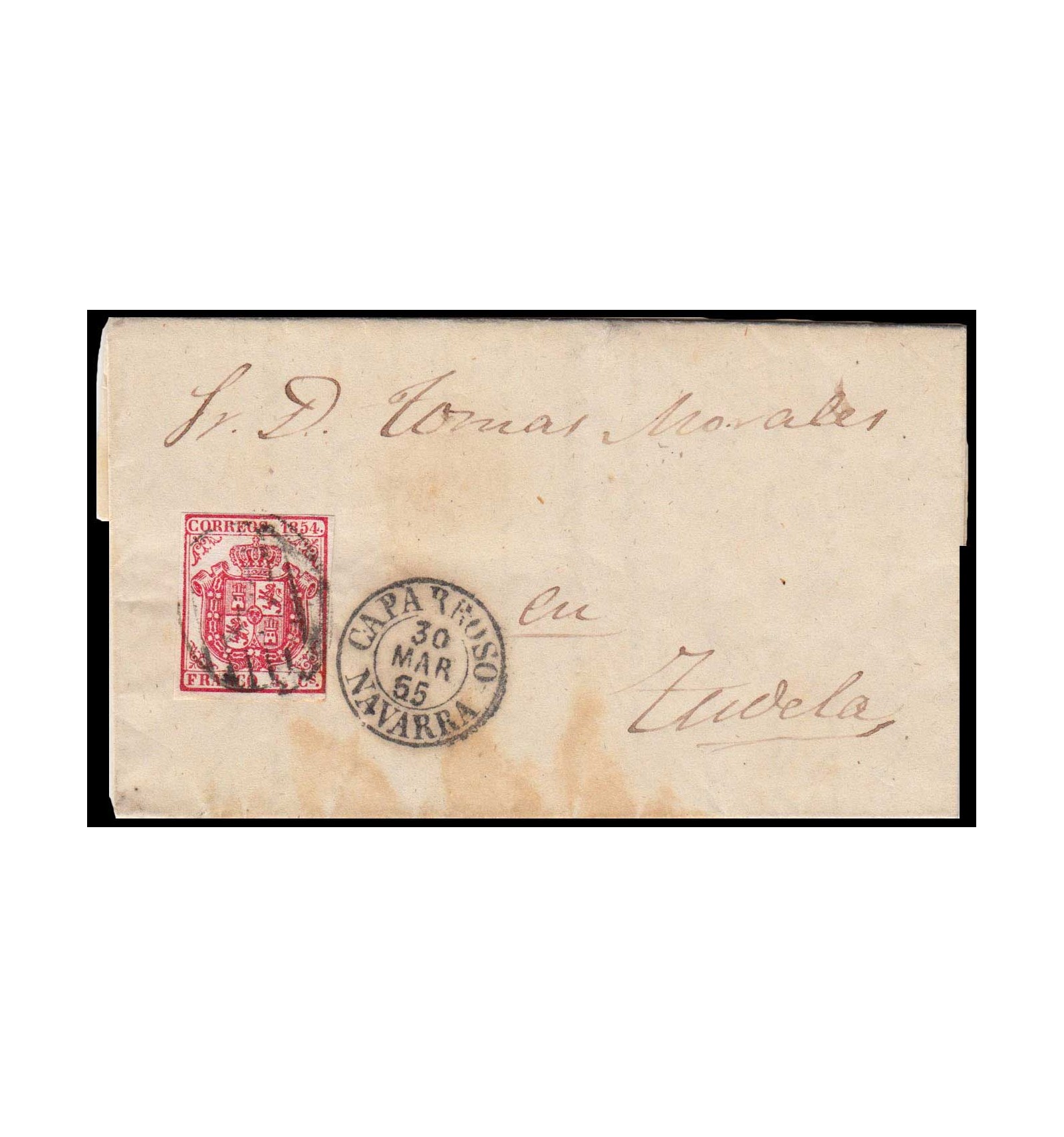 Carta de Carcastillo (Navarra) a Tutela del 30 de marzo de 1855. Carta nacida en población dependiente postalmente de Caparroso.