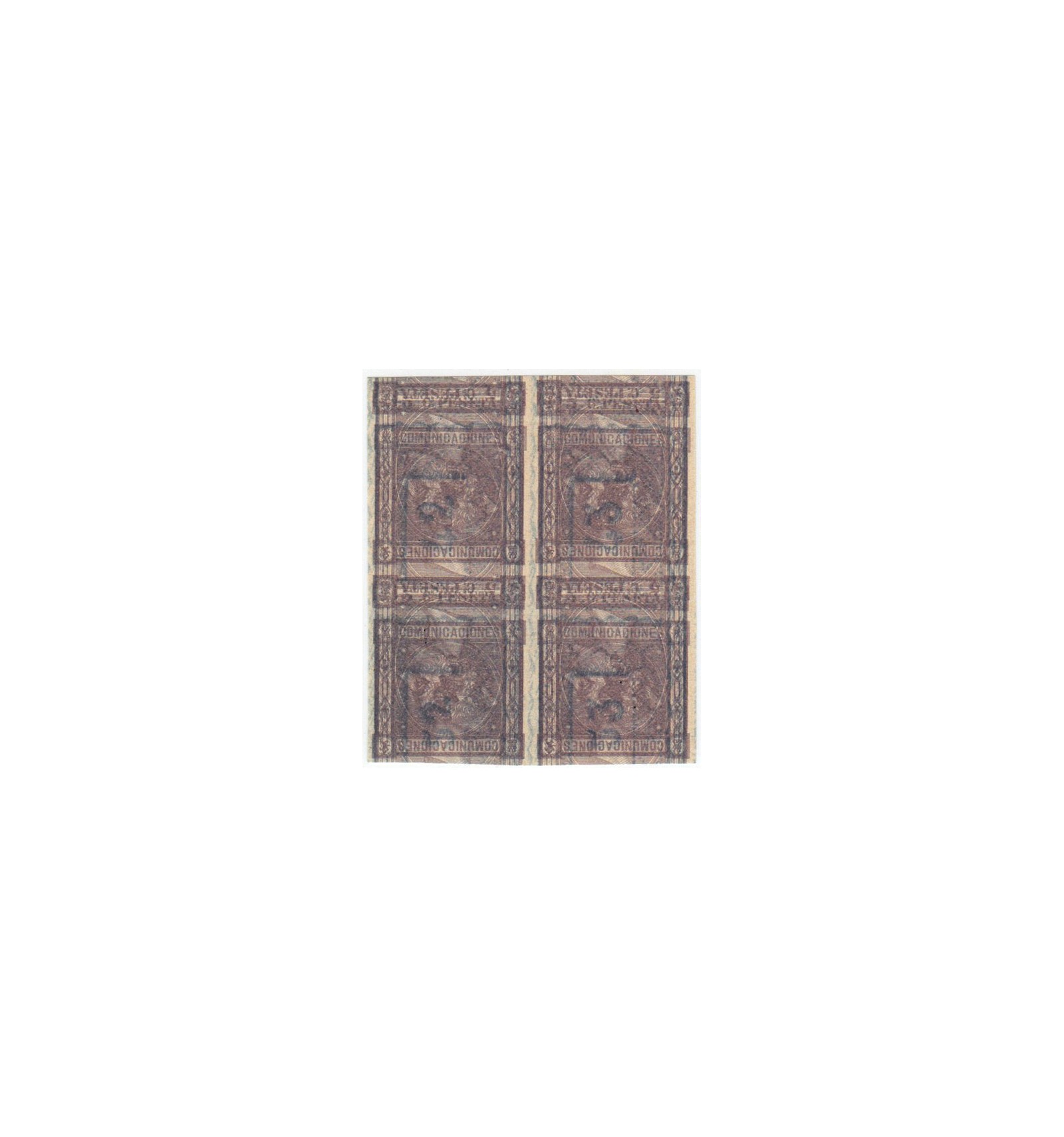 (*) Bloque de cuatro de maculatura (doble normal e invertida) no catalogada en el catálogo de Pruebas y Ensayos de Gálvez 1960.