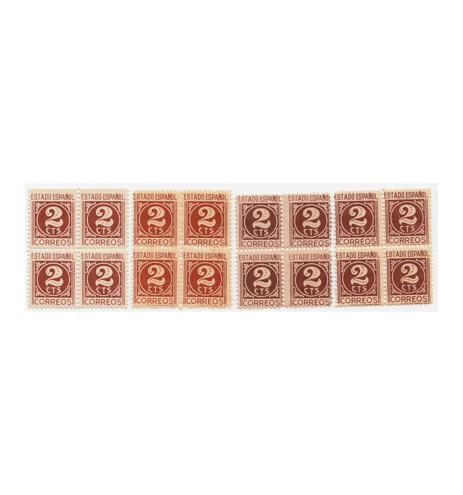 ** Cuatro bloques de cuatro con diferentes colores y papel, así como uno con variedad de reporte por ausencia de pie de imprenta.