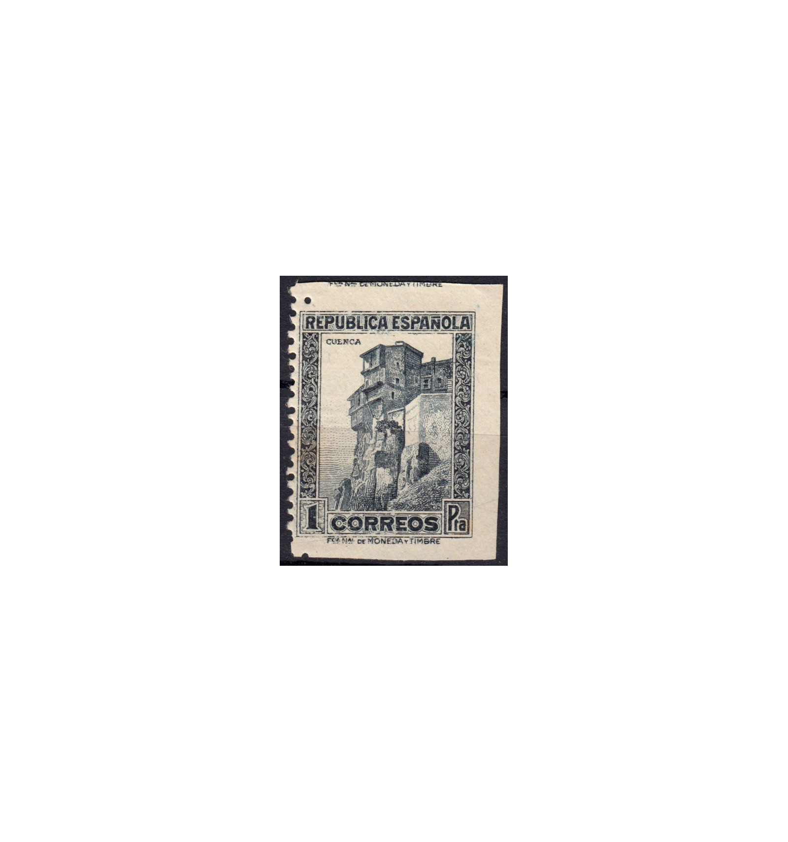 Impresión del sello en el borde la hoja, siendo por ello que solo está dentado por la izquierda y que en el reverso la goma esta parcialmente. Variedad no catalogada.