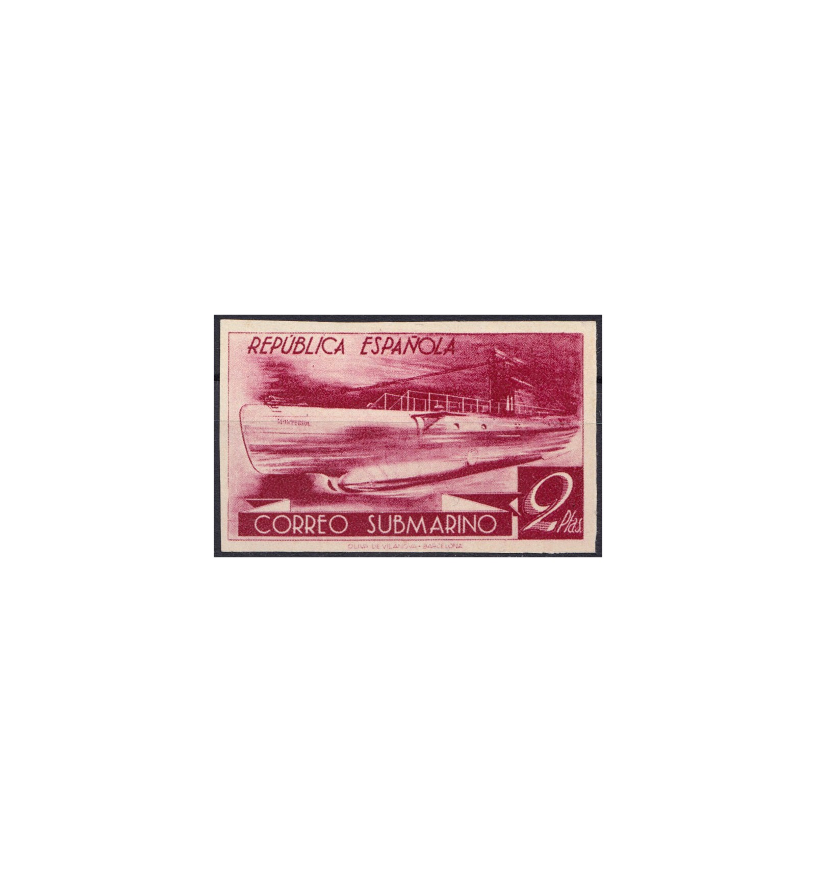 * Sello de 2 ptas sin dentar en color malva en vez de castaño rojizo.