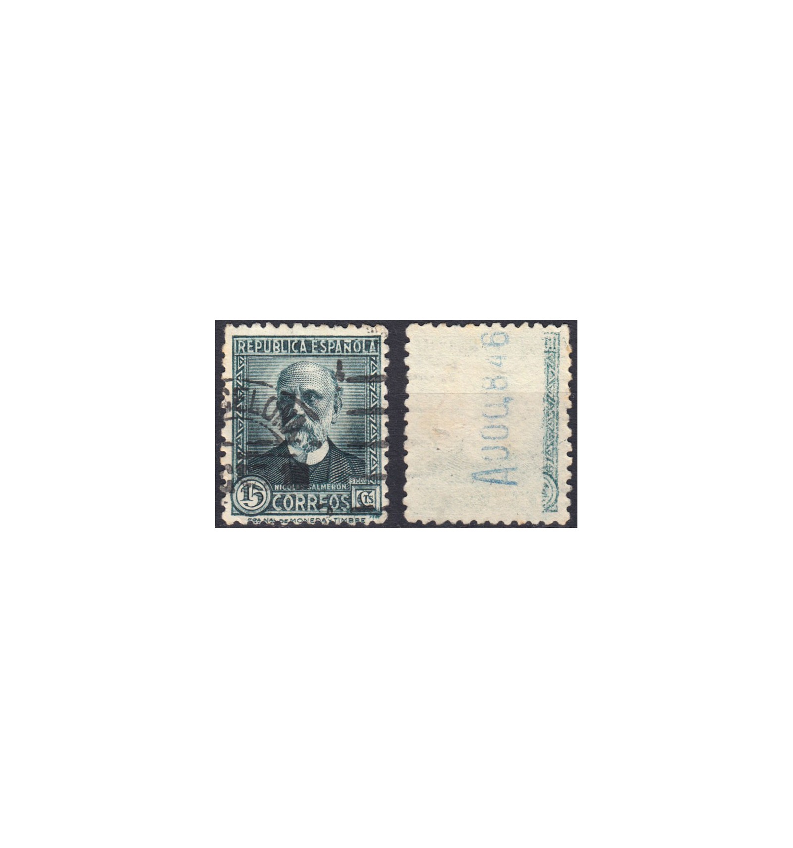 º Variedad de impresión por calcado parcial al dorso. Este valor no se cataloga con esta variedad en Edifil. Matasellado en Barcelona. El sello presenta un levantamiento de papel en el reverso.