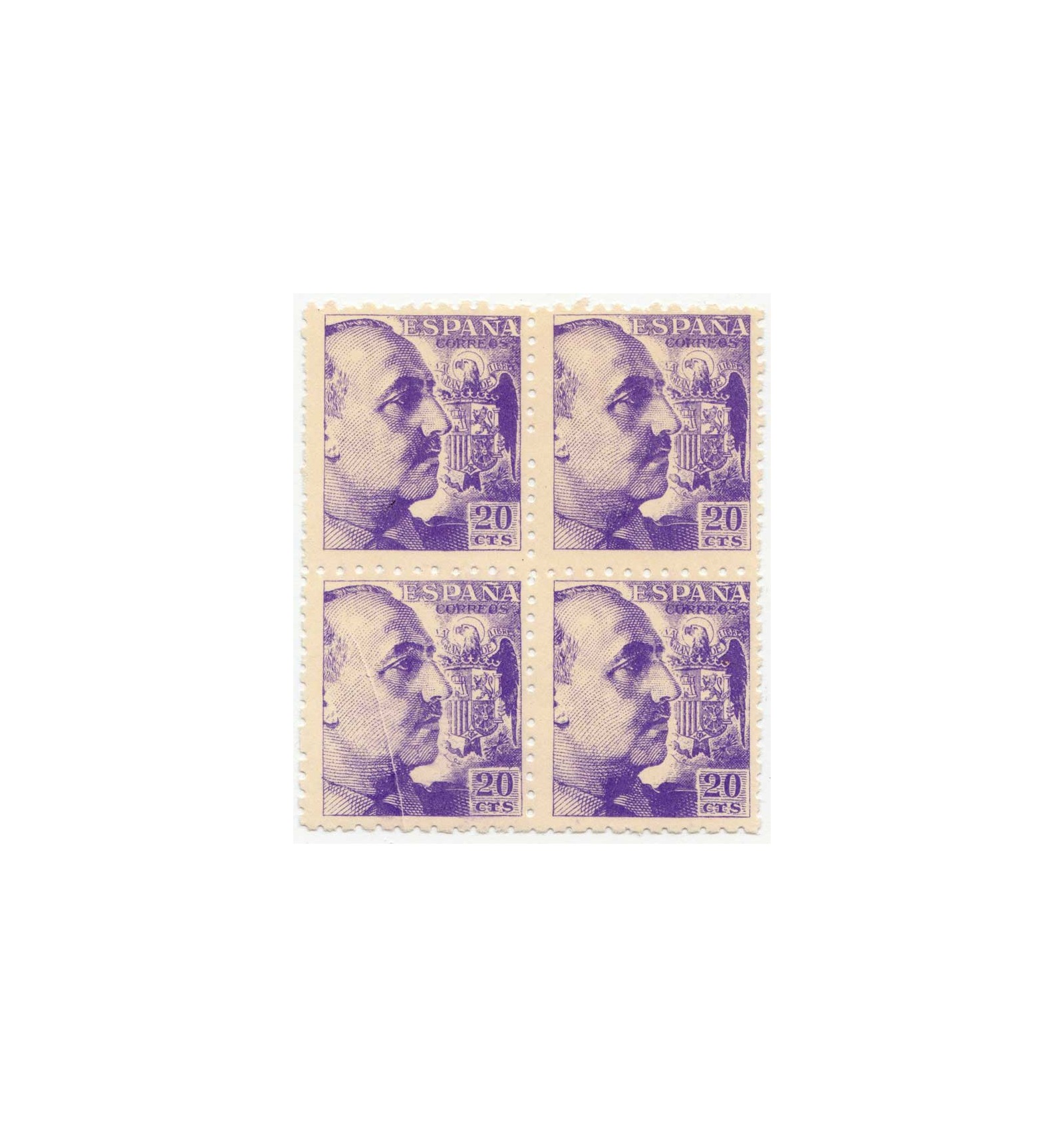 ** Bloque de cuatro con sello inferior izquierdo con línea de empalme en la mita de la cara.