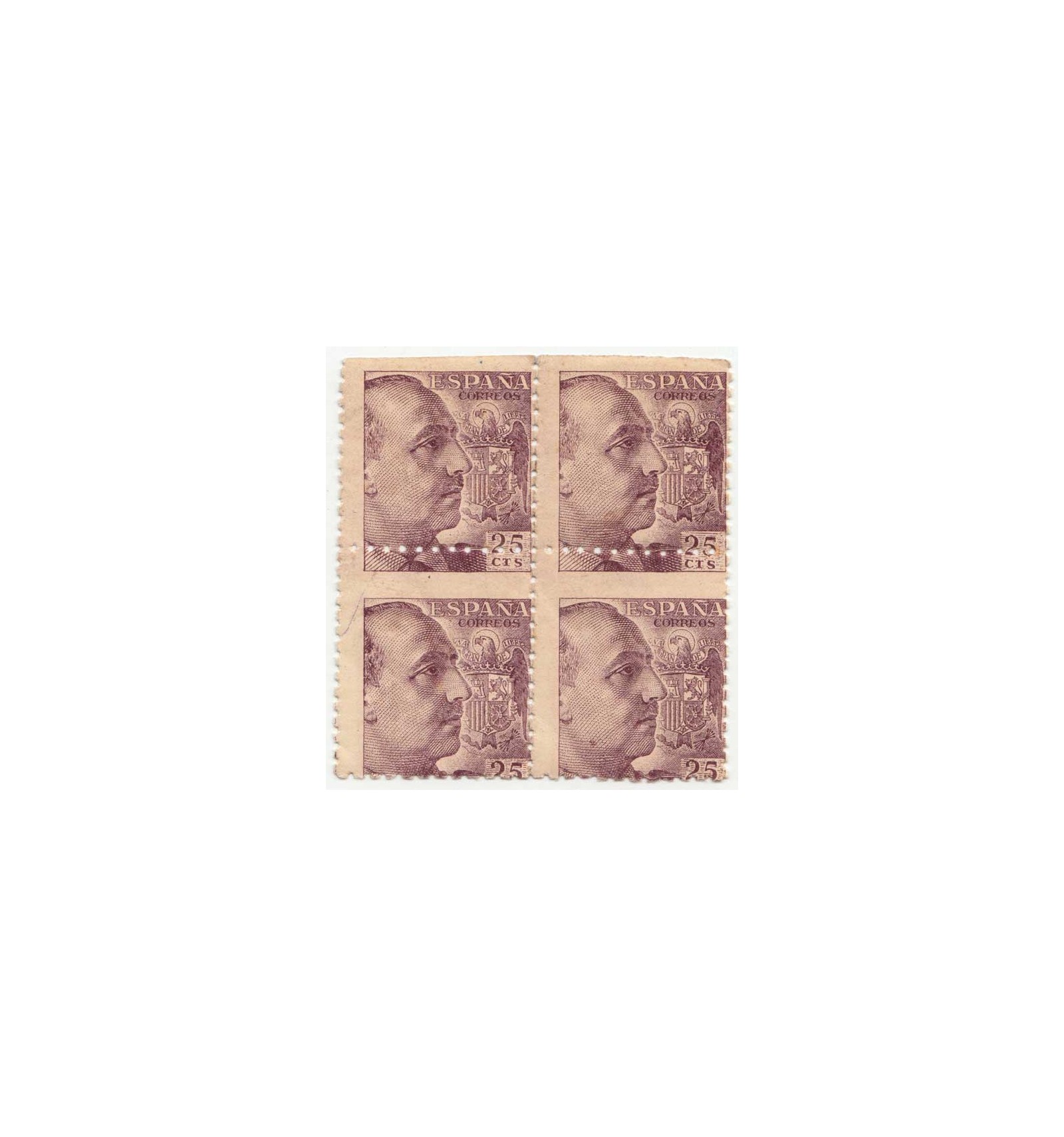 ** Bloque de cuatro con el dentado horizontal desplazado. Inapreciables punto de óxido.