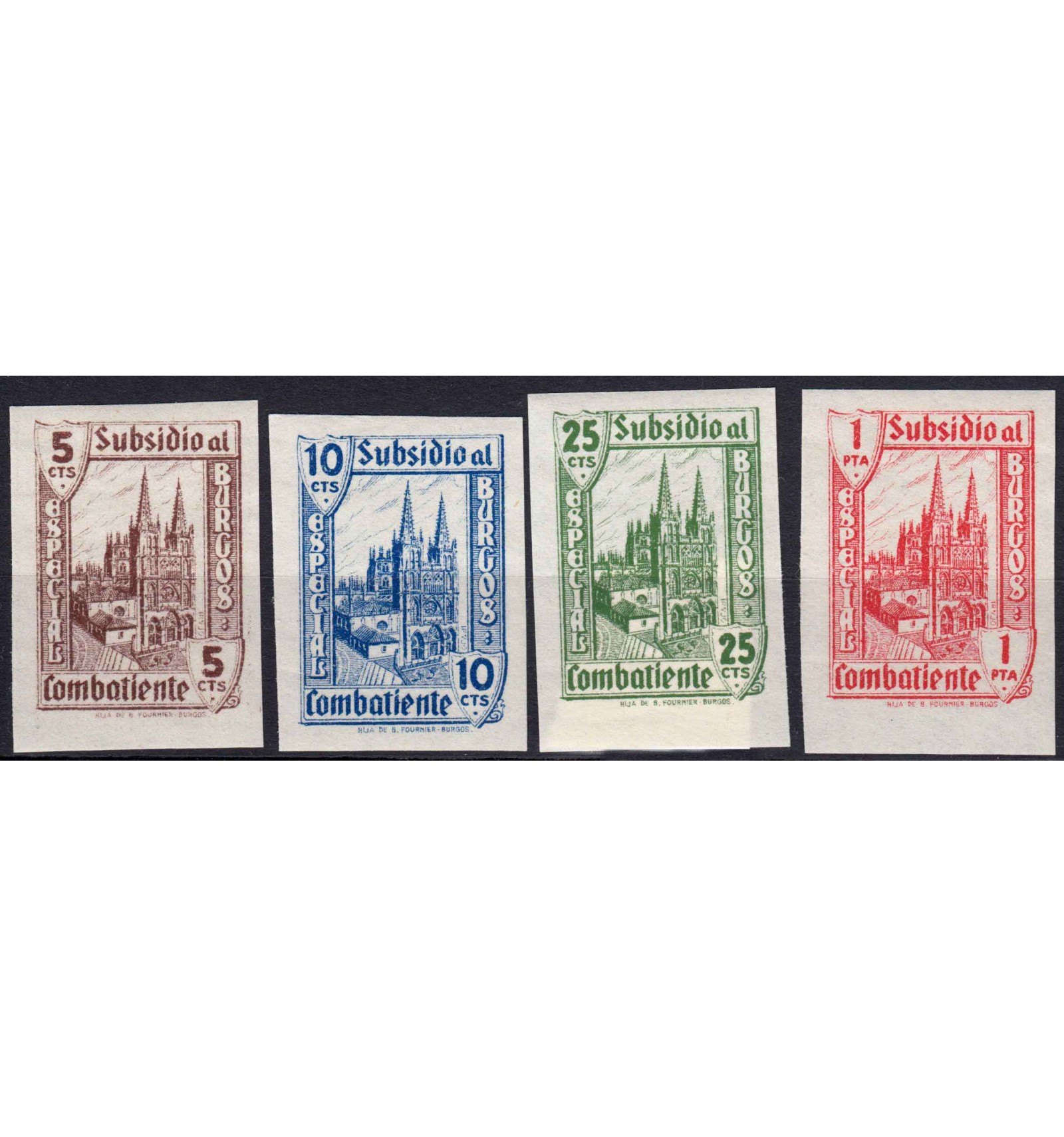 Cuatro viñetas de Burgos. Subsidio al Combatiente sin dentar.. Sin charnela (**) y de lujo.