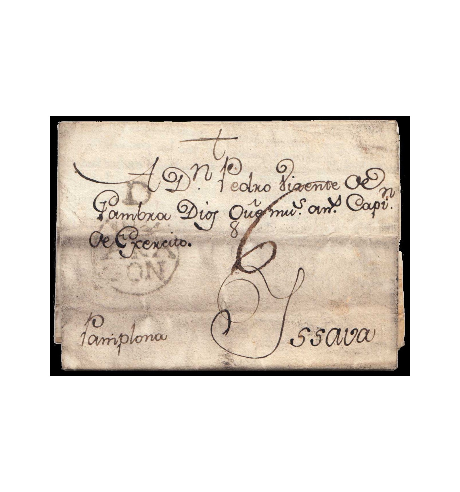 Carta de Daroca (Zaragoza, Aragón) a Isaba (Navarra) fechada el 21 de agosto de 1790. Porteo 6 manuscrito. Buena impresión de la marca prefilatélica D ARAGON en círculo y coronada.